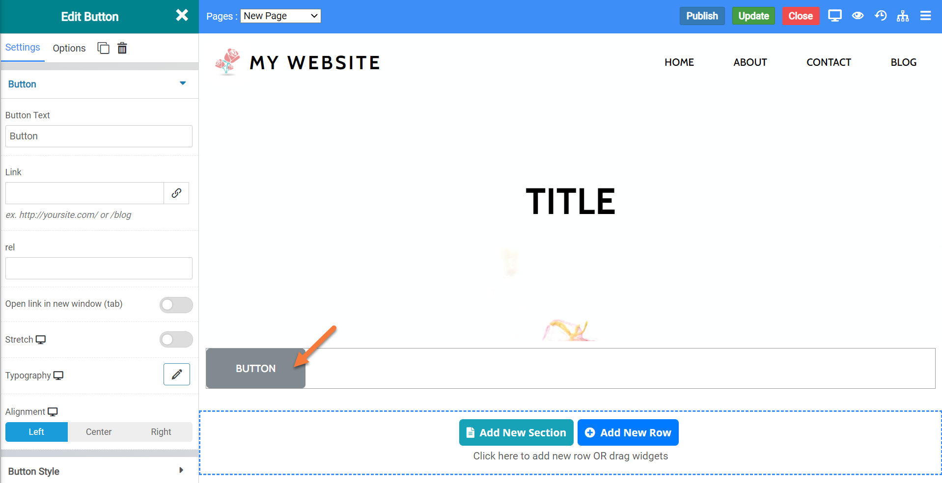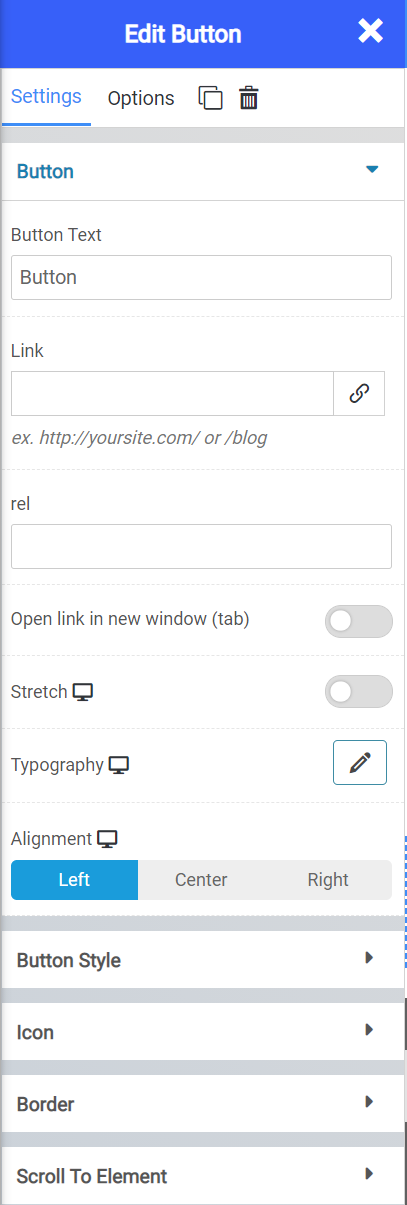 - With the Alignment settings, you can set the button to be aligned to the left, center, or right of your webpage.