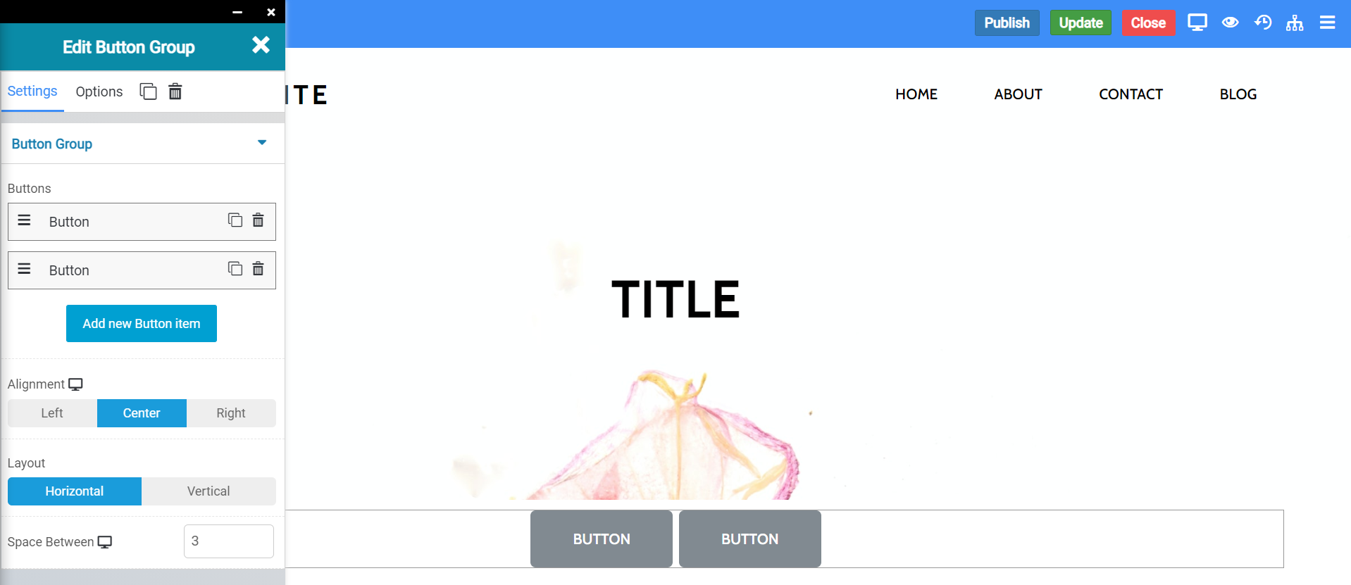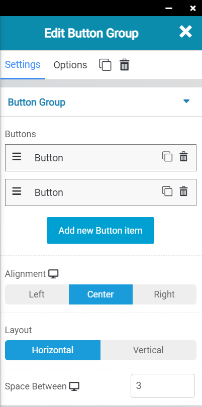 - With Layout, you can set the buttons to be laid out in a horizontal or vertical line.