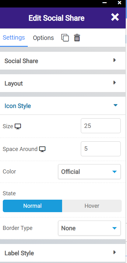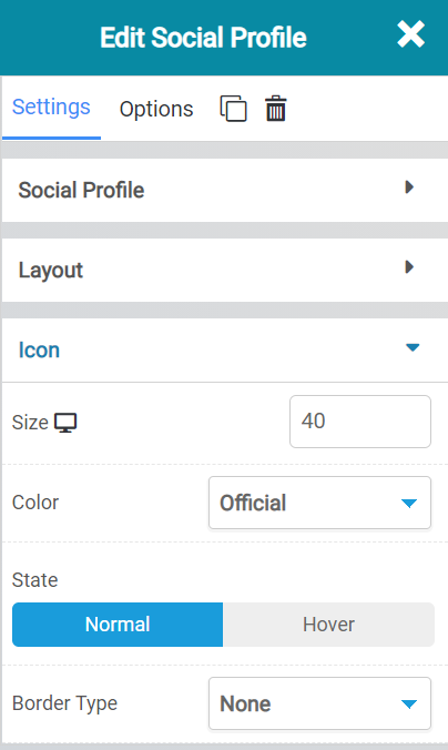 - Set a state for the icon, whether it’s static or the border appears when a visitor hovers over the icon.