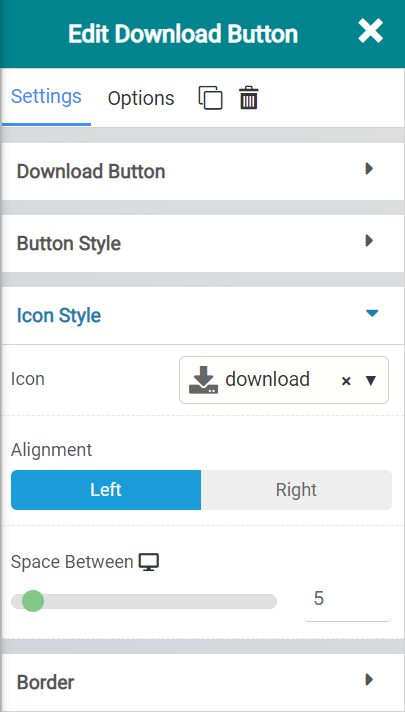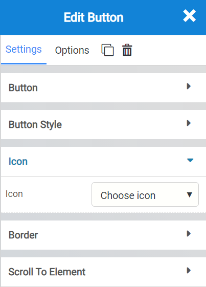 The icon option allows you to insert an icon into the Button. You can choose from hundreds of different icons.