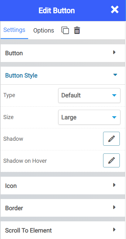 - With Shadow or Shadow on Hover, you can change the shadow option for the button, whether you want it there all the time or only when a visitor to your site hovers over the button.