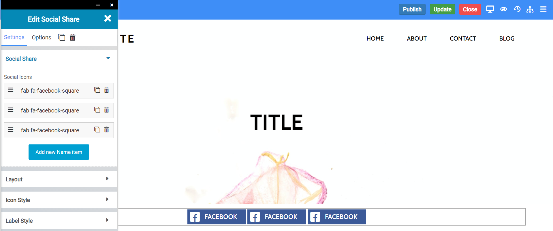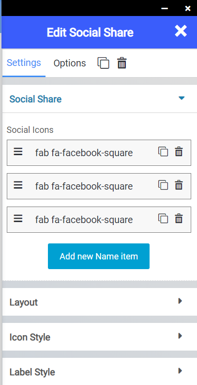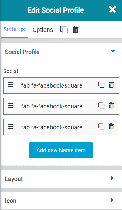 - The Social Section lets you add/remove different social networks. By default, three Facebooks are added, but you can remove them and add others, such as Twitter, Instagram, and LinkedIn.