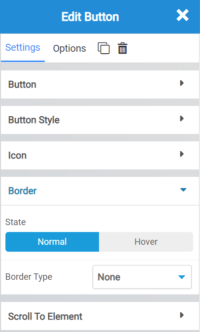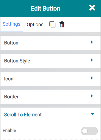 Scroll to element enables you to set this button to jump to content further down the same page. This can be helpful if you are using this button in a FAQ-style page.