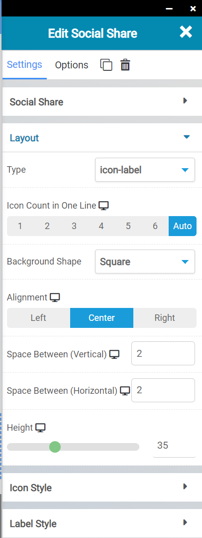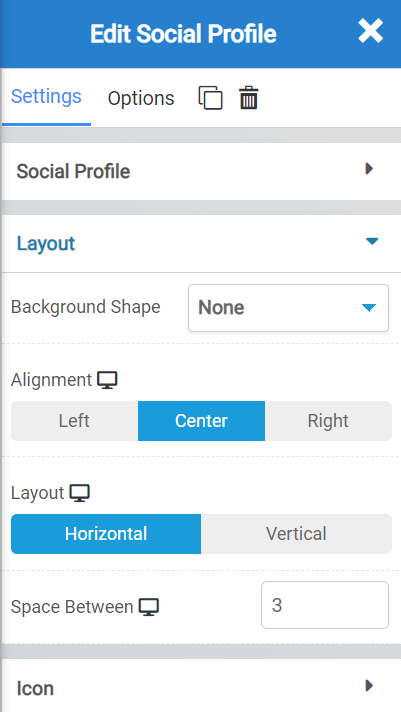 - You can align the social icon widget to the left, center, or right, with the Alignment setting.