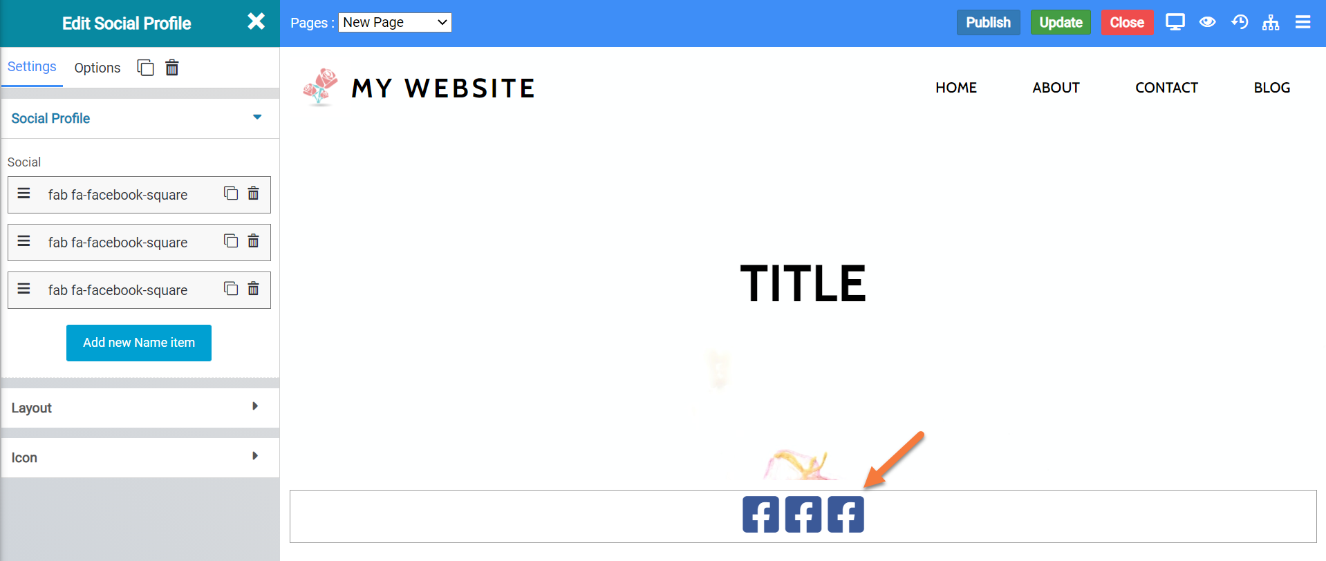 The Social Profile Widget allows you to insert links to your social media profiles.