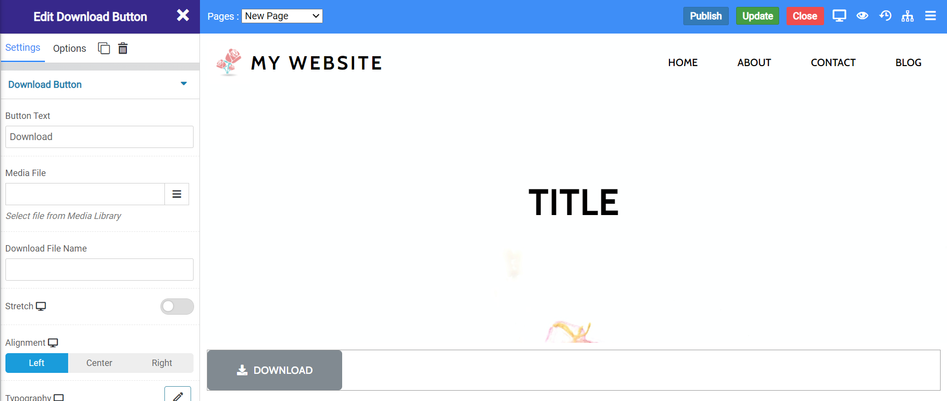 The download button widget lets you insert a download button so your visitors can download files from your website.