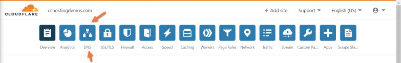Step 1: Log in to your Cloudflare Control Panel and open the DNS Settings by clicking the DNS tab at the top of the Cloudflare Dashboard.