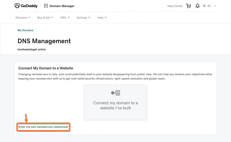 Step 5: On the next page, click the option at the bottom – Enter my own nameservers (advanced).