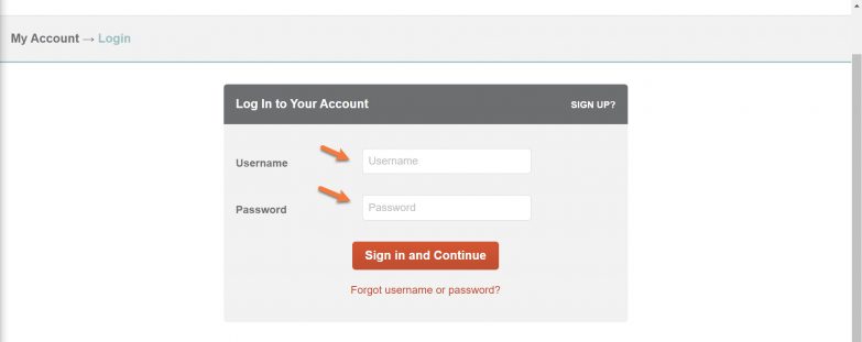Step 1) Click here to open the Login page for your NameCheap Dashboard. Then enter your username and password and click the orange Sign In and Continue button.