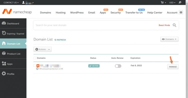 - Access Namecheap Account: Log in to your Namecheap account where your domain is registered.