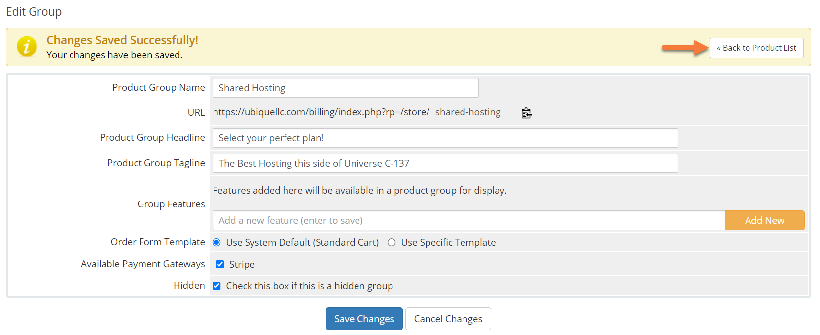 - The product group I created originally is for Shared Hosting, so I’m going to leave that selected.