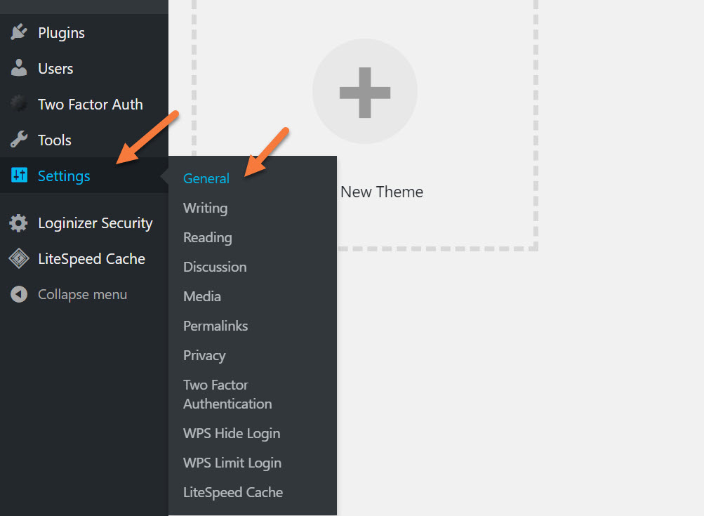 Step 1: Open your /wp-admin area and hover over Settings on the left side of your Dashboard, then click General.
