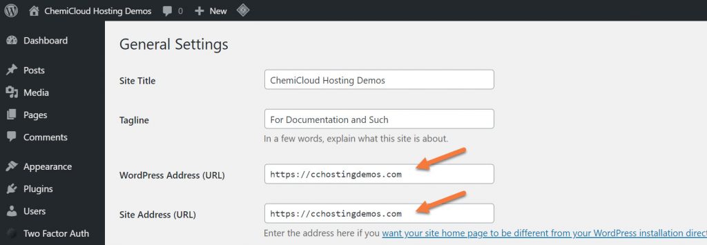 Step 2: Look at your WordPress Address URL and your Site Address URL and make sure the same domain is used.