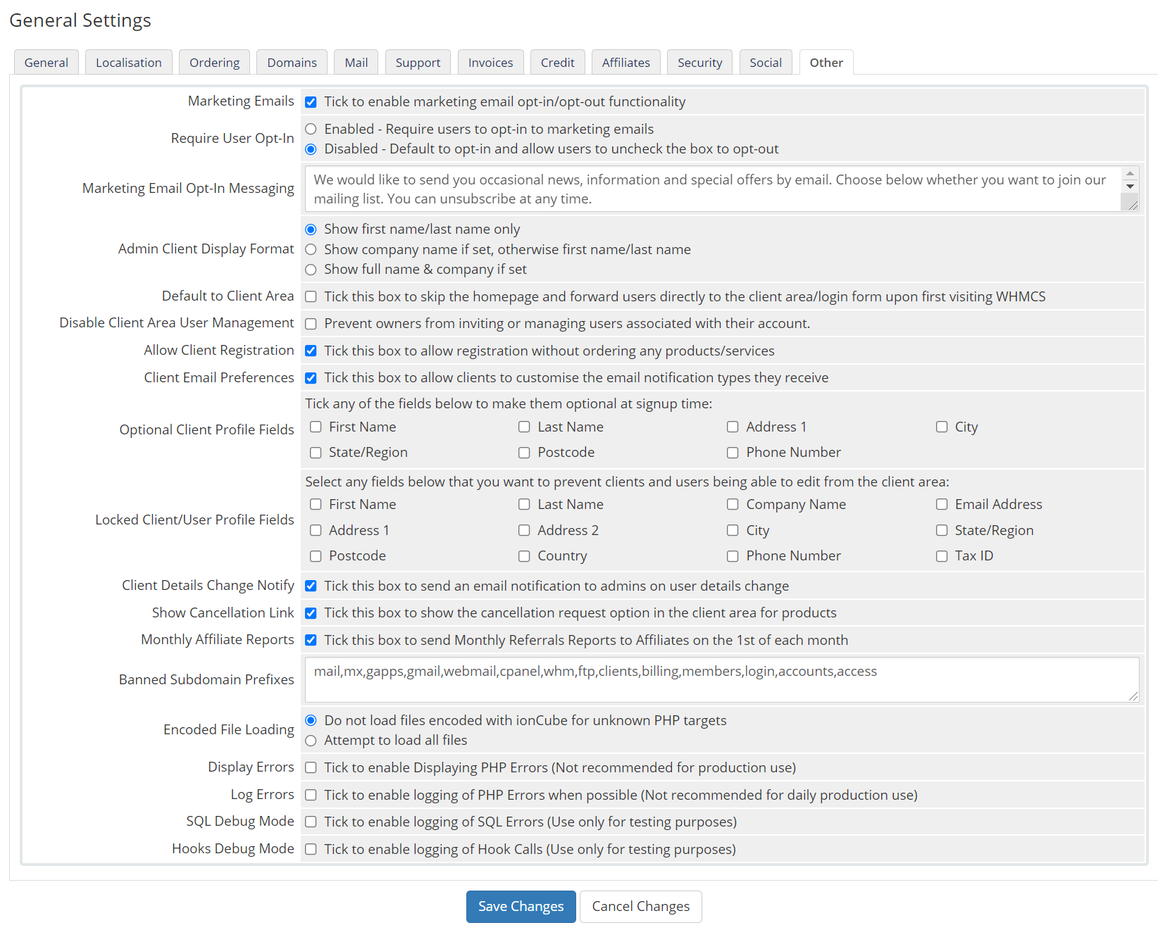 The Mail area contains a very important setting you must modify to use WHMCS successfully at ChemiCloud.