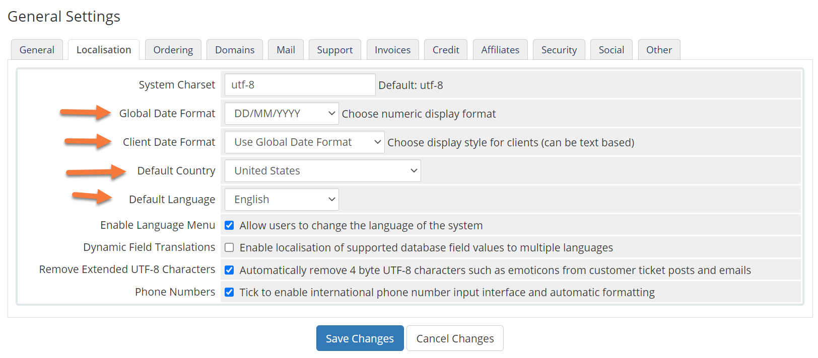 2. Once the System Settings load, you’ll notice there is a row of 12 tabs at the top of the page. Since you need to configure some of these settings to customize your WHMCS installation, let’s review each tab.