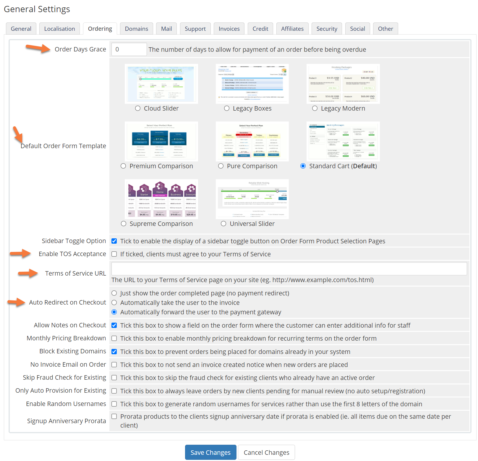 - Choose a “Default Order Form Template” to present to your customers when they are ordering.