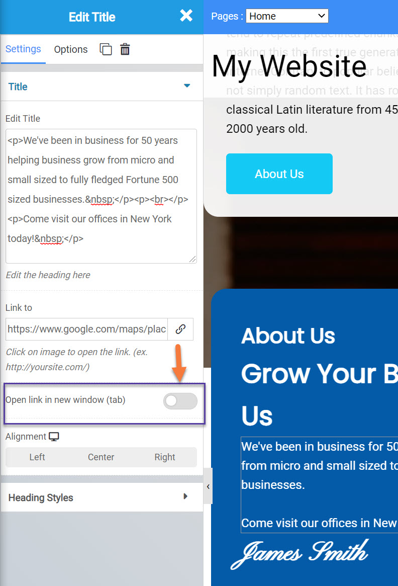 The Website Builder wouldn’t be worth it’s weight in code if it didn’t let you set custom links to off-site pages, now wouldn’t it?
