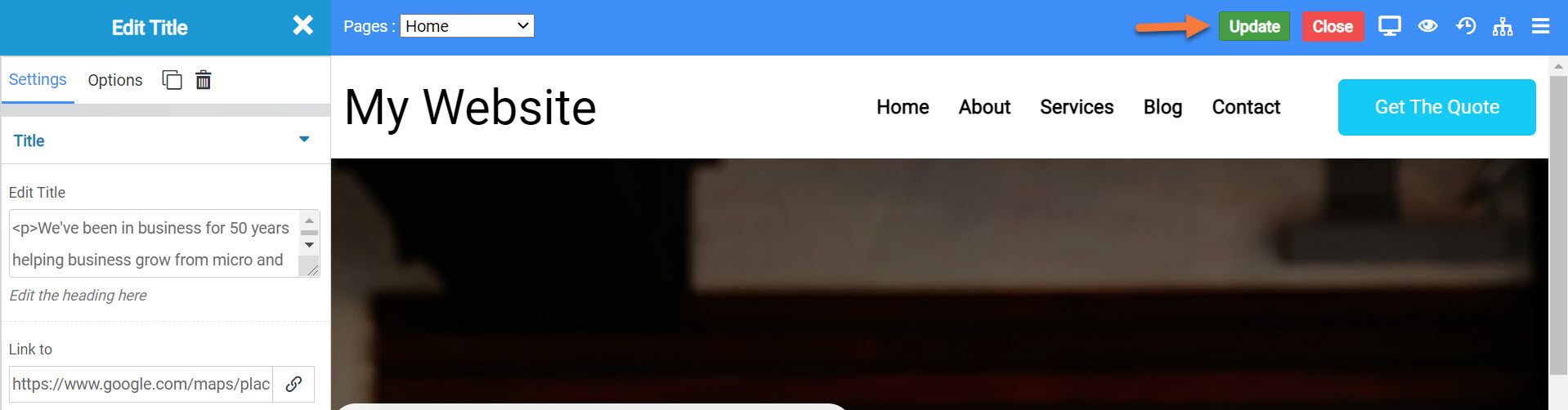 Step 5: Once the page you want to edit and insert a link into is open, choose the area on the page which has content you want to link. For my example, I’m going to insert my address and create a link to Google Maps so that opens if someone clicks on it.