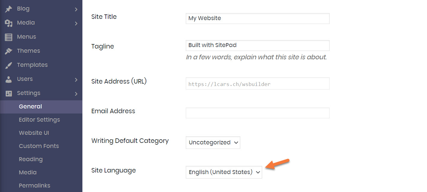 You can change the Site Language by clicking the dropdown and choosing a new language.