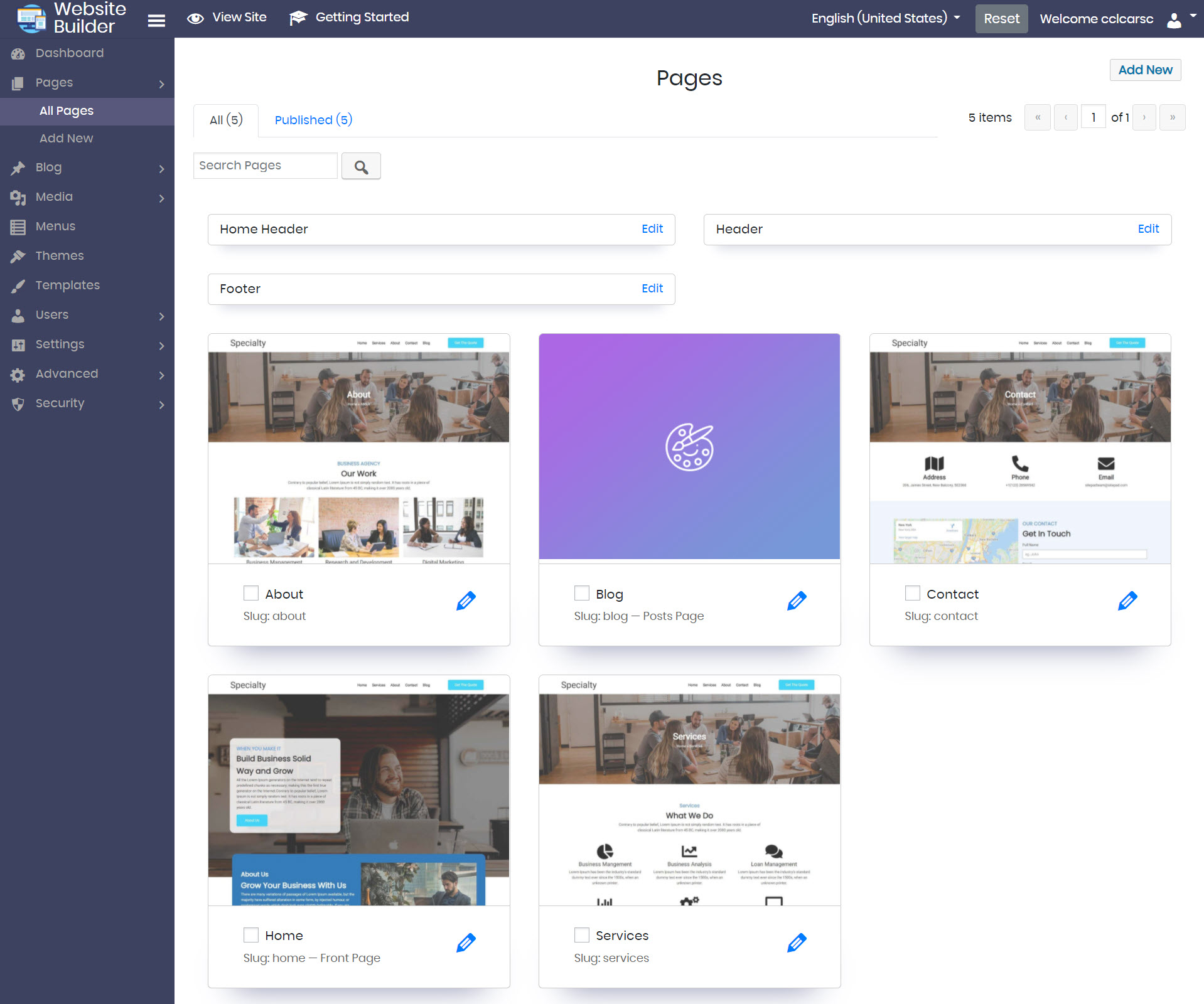 Step 4: Once the Site Admin area opens, click Pages from the menu on the left, then click All Pages.