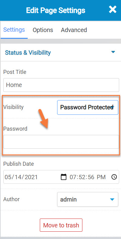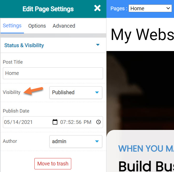 Step 5: Once the page is open, look on the left side in the “Edit Page Settings” tool and find the Visibility options.