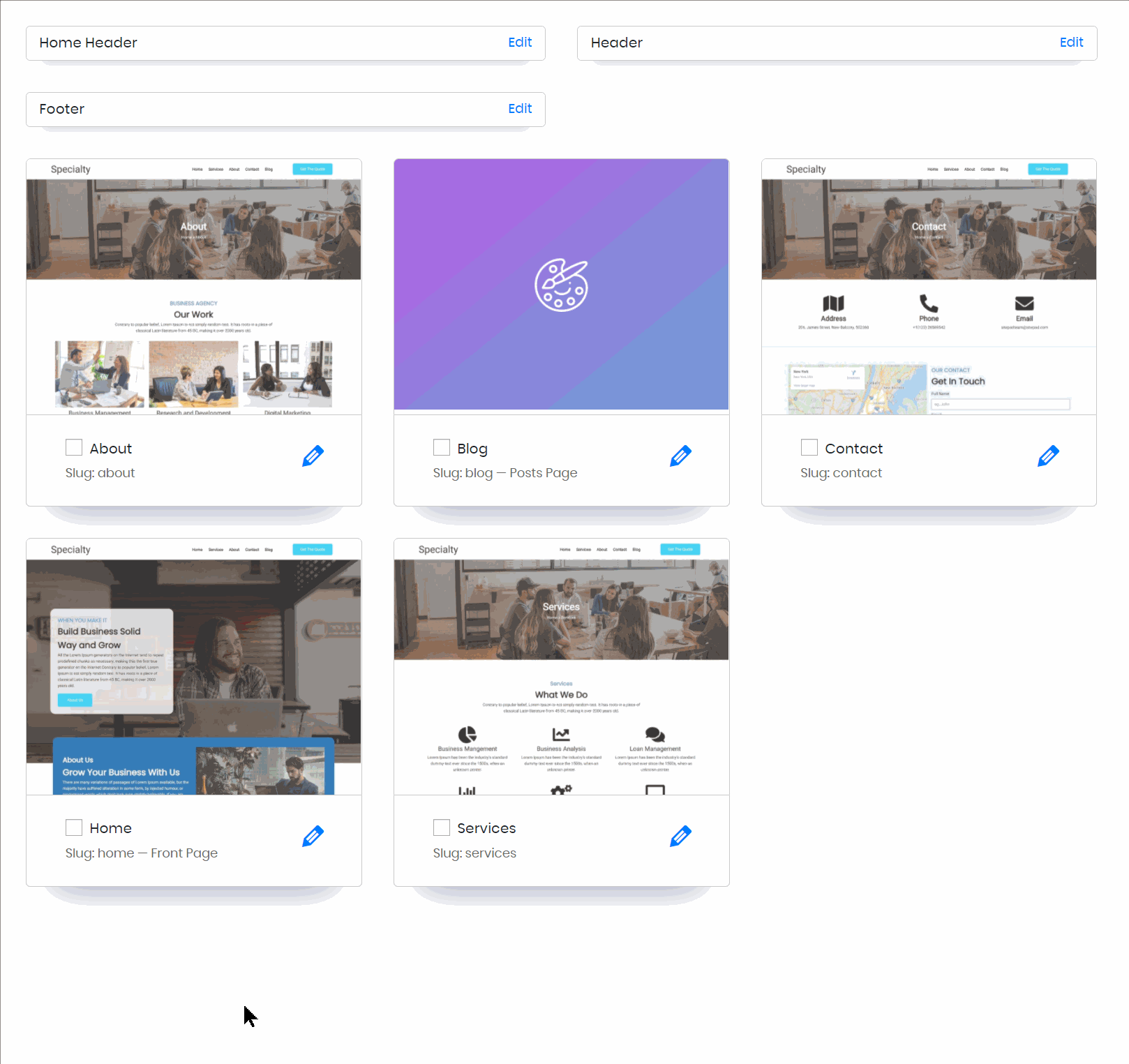 Choose the page you want to password protect, then hover over the page and click the pencil icon to open the page editor.