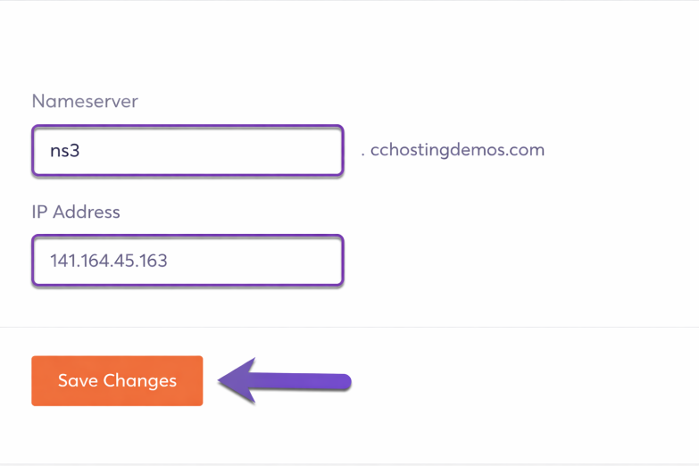 Click “Save Changes” – Your second nameserver has been registered.