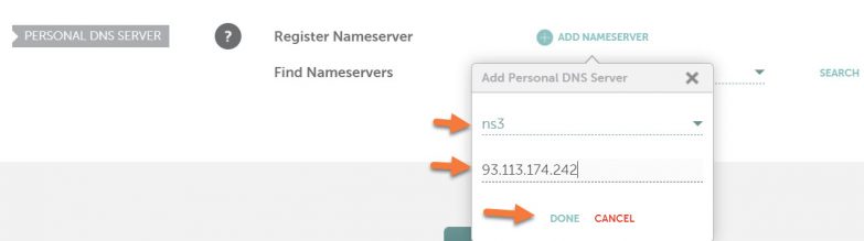 Click Done to save this first private nameserver.