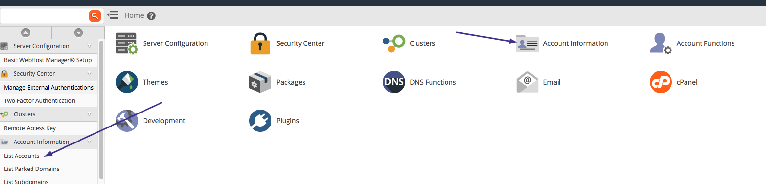 You can quickly view all the cPanel accounts created under the WHM account by going to the List Accounts section, this is a great way to easily manage all the aspects of your cPanel accounts.