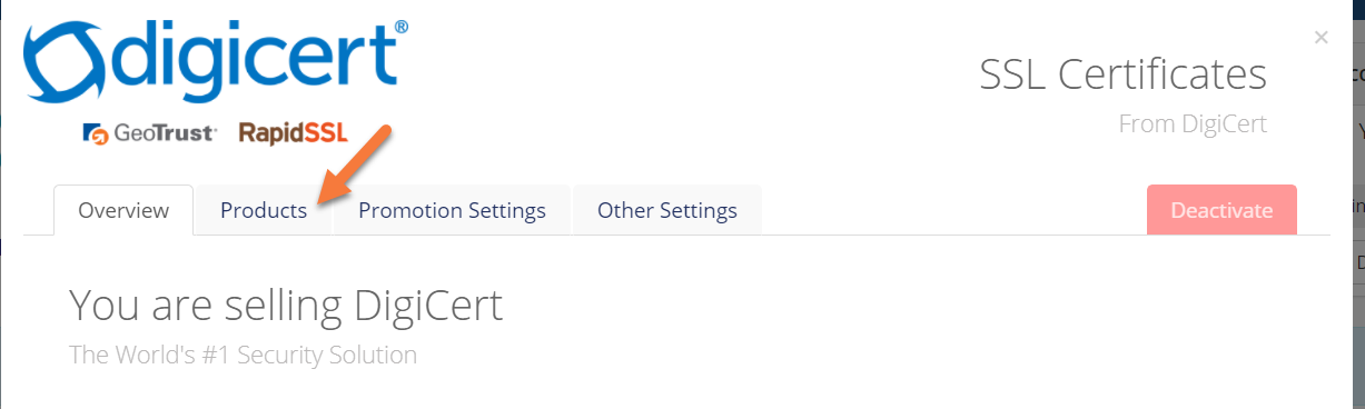 Step 4: For our example, we’ll be setting promotions for our DigiCert SSL Certificates.